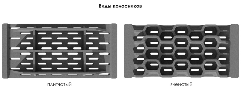 Конструкция колосниковой решетки может иметь два вида: плитчатый и ячеистый.