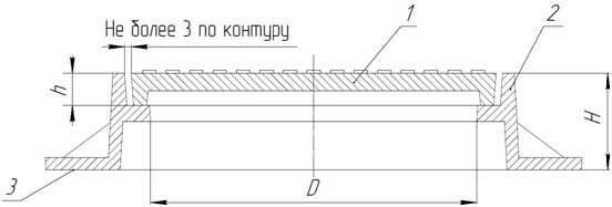 3 – имеющие в конструкции крышки углубление под заполнение бетоном класса не ниже В30 в соответствии с ГОСТ 26633, корпус люка с комбинированным вариантом исполнением чугуна с бетоном марки не ниже В30, соответствующего ГОСТ 26633 (см. приложение А, рисунок А.3);